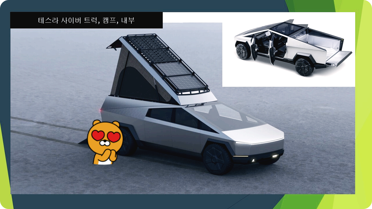 이 차량을 통해 얻은 경험은 단순한 운전의 즐거움을 넘어, 일상 속에서 특별한 순간을 만들어 주었습니다. 도심의 번잡함 속에서도, 자연 속의 여유 속에서도 사이버트럭은 항상 나와 함께하며 새로운 가능성을 열어주었습니다. 여러분도 사이버트럭을 통해 미래의 이동을 경험해 보시길 바랍니다. 이 차량이 여러분의 삶에 어떤 변화를 가져올지 기대해 보세요.